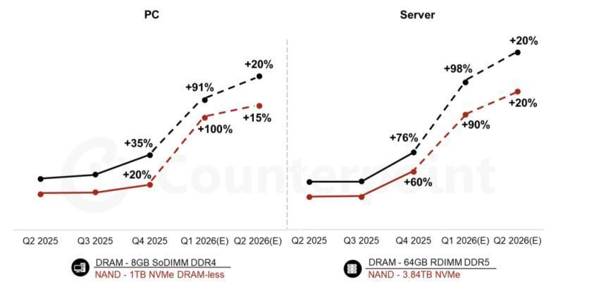 2025 年第二季度至 2026 年第二季度(预测):PC 及劳动器内存价钱走势