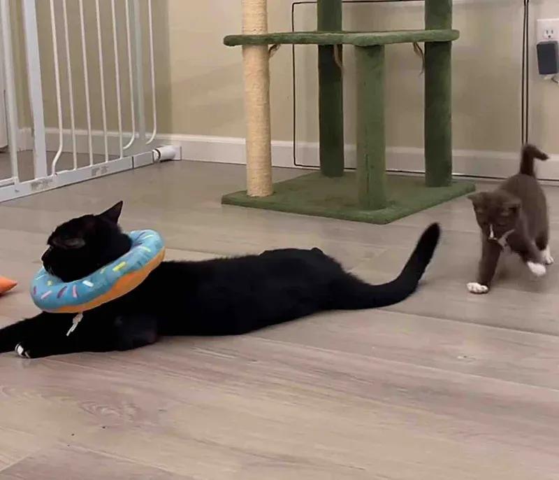它把家里的每个边际王人酿成了我方的游乐场,在房间里奔驰,攀爬猫爬架,和新矍铄的一又友们如胶如漆。